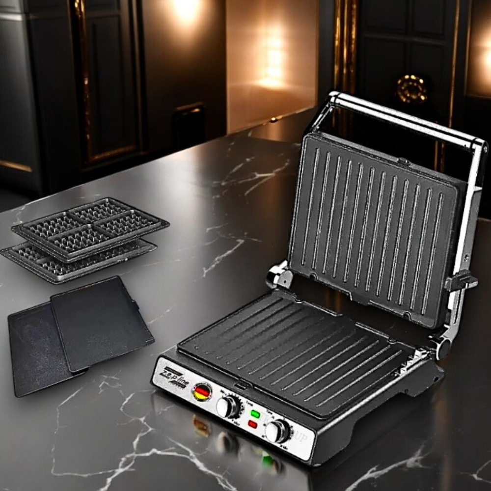 Електричний гриль Zepline 3500Вт Притискний гриль 3в1 Електровафельниця Гриль з розкриттям на 180 К2